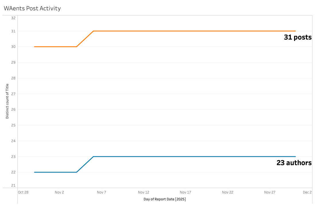 - Total Volume: The subreddit generated only 31 Distinct Posts over the entire tracked period.